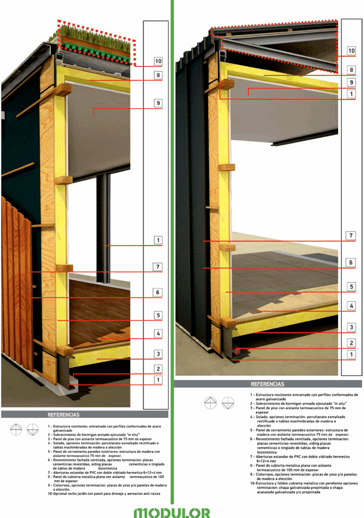 Un Concepto Innovador. El concepto consiste en un viviendas modulares y mixtas obtenidas por el agregado de múltiples elementos modulares completos que pueden ser transportados por ruta sin recurrir a un trasporte excepcional. En su composición con un análisis detallado y tecnológico combinando elementos en construcción en seco por steel framing (sistema en acero) y Wood frame (sistema en madera), asegurando así el más alto nivel de rendimiento energético, control de calidad, automatización y flexibilidad. Nuestro sistema permite crear de manera muy simple cualquier tipo de construcción de cualquier tipo de tamaño sin sacrificar la calidad arquitectónica.